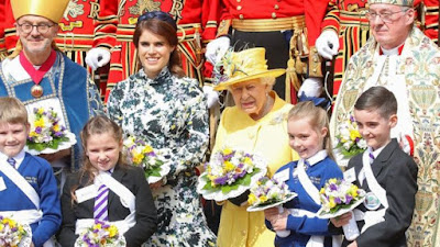this year accompanied by Princess Eugenie, daughter of Prince Andrew, this year at St. George's Chapel at Windsor Castle.