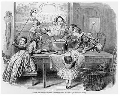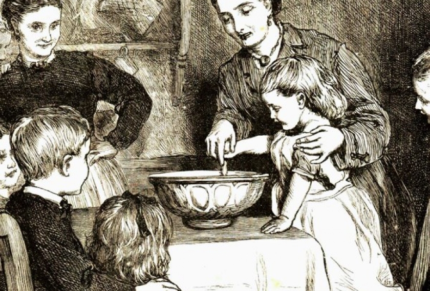 There also developed in the early Victorian era the mixing in of small silver fortune telling tokens in the wealthier families, or a sixpence or two in the more simple puddings.