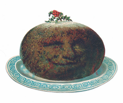 Greeting card featuring a Christmas pudding with a face... from 1880. British Library